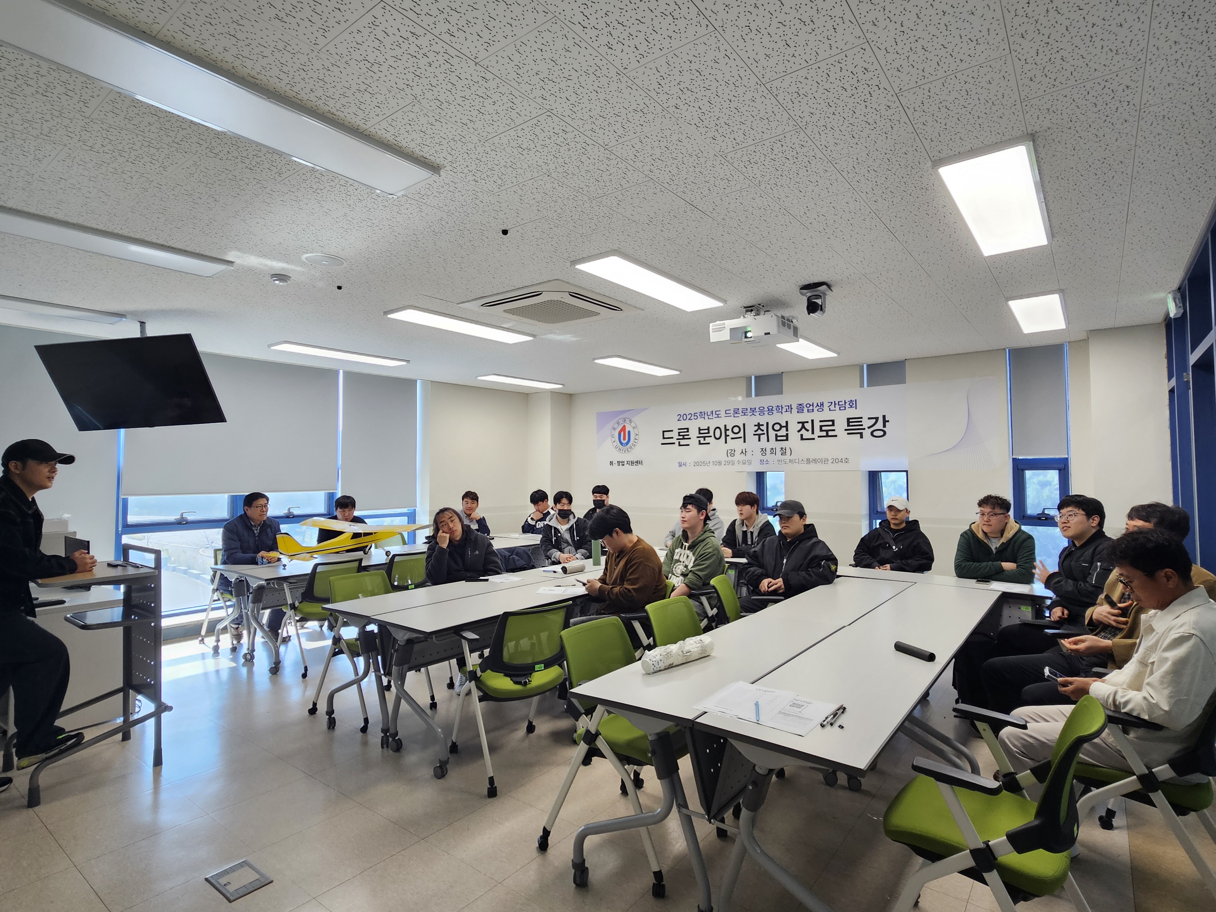 -졸업생(정희철/2025년 졸업, 남경무인항공, 교육팀 교관; 조민혁/2023년 졸업, 현재 현역 공군)을 초청하여 취업 진로에 대한 조언, 후배들이 궁금한 것 중심으로 간담회 진행함.