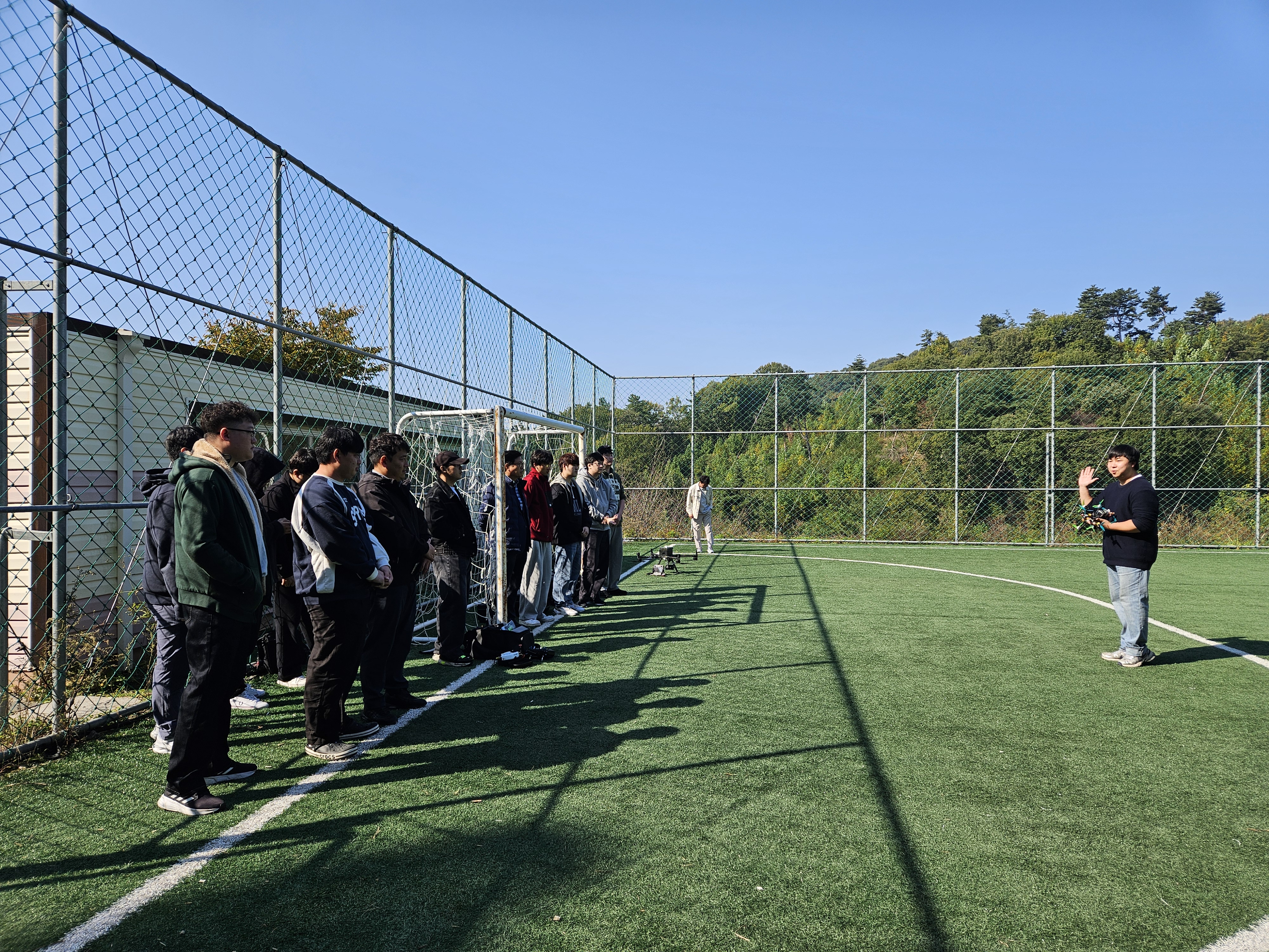 사전 행사로 1부에서 레이싱 드론 시연/설명(정희철 졸업생), 현업에 사용되는 방재 드론 교육(장문광 교수님), 복합센서 드론 실습교육(김석주 교수님) 등을 실외 연습장에서 진행하였음.