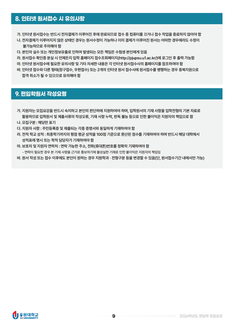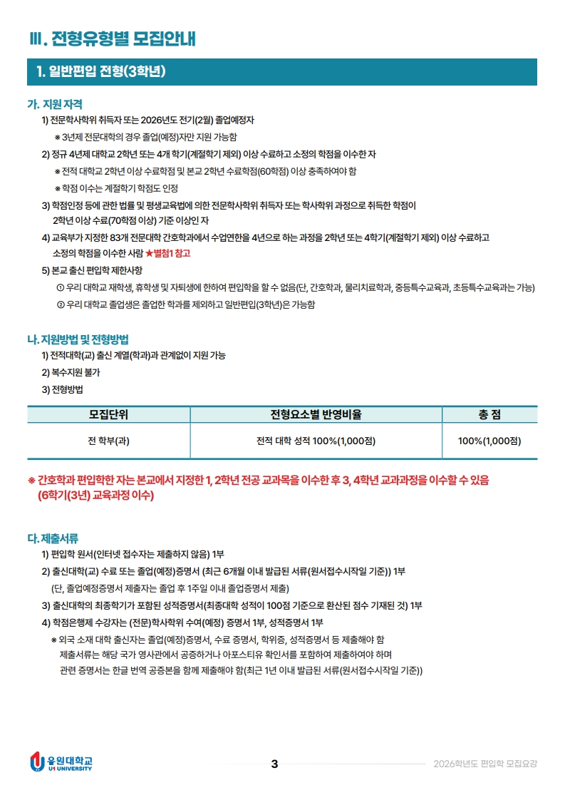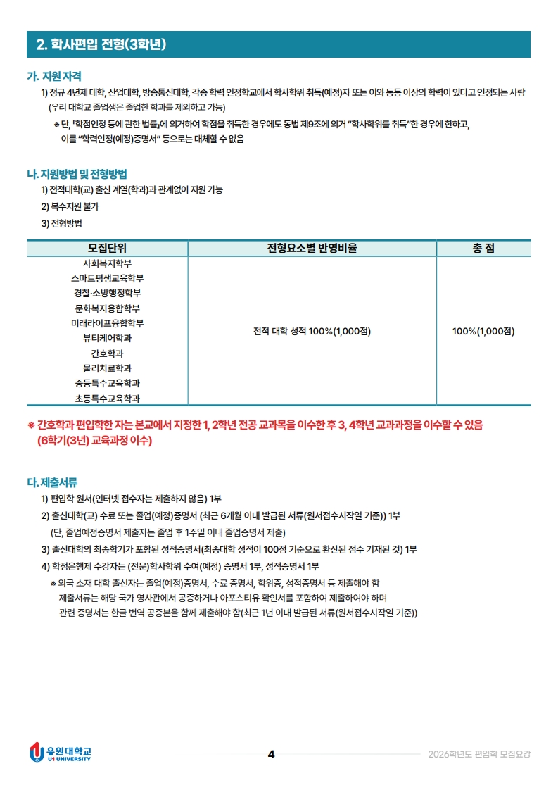 2026학년도 편입학 모집요강입니다.