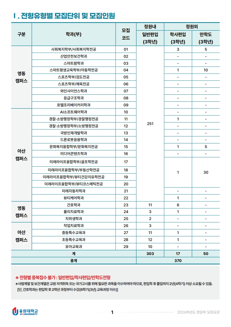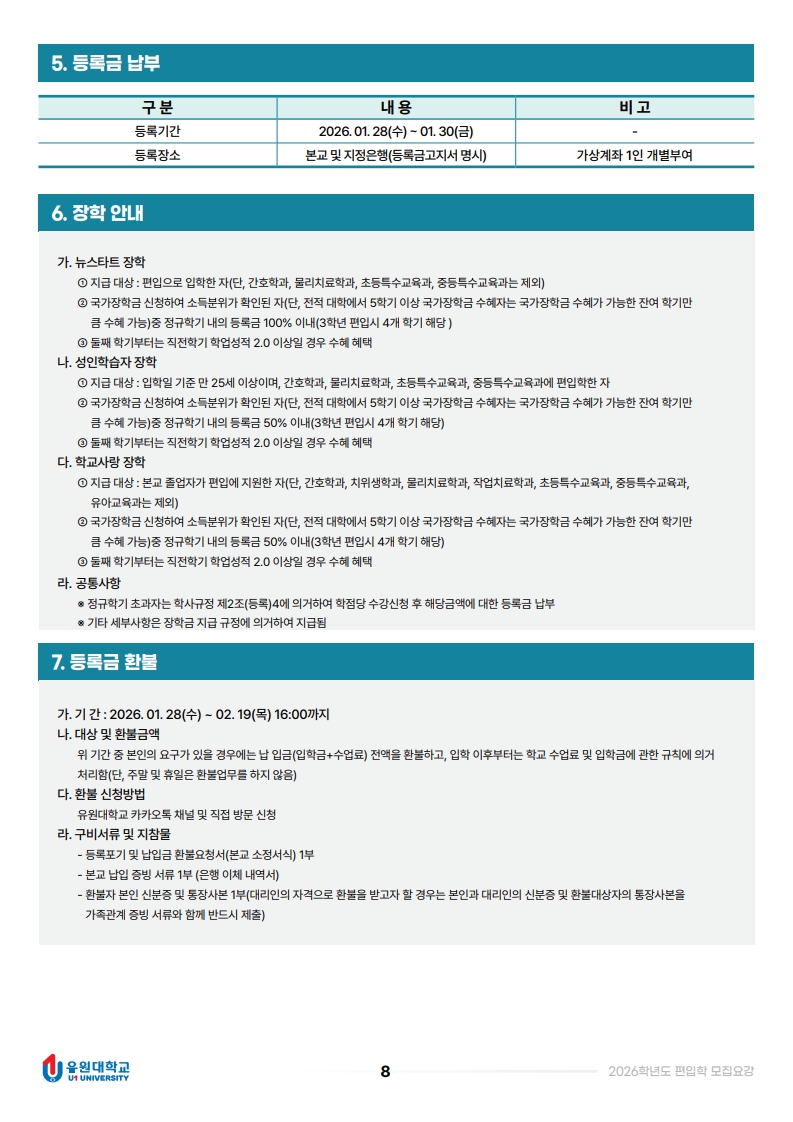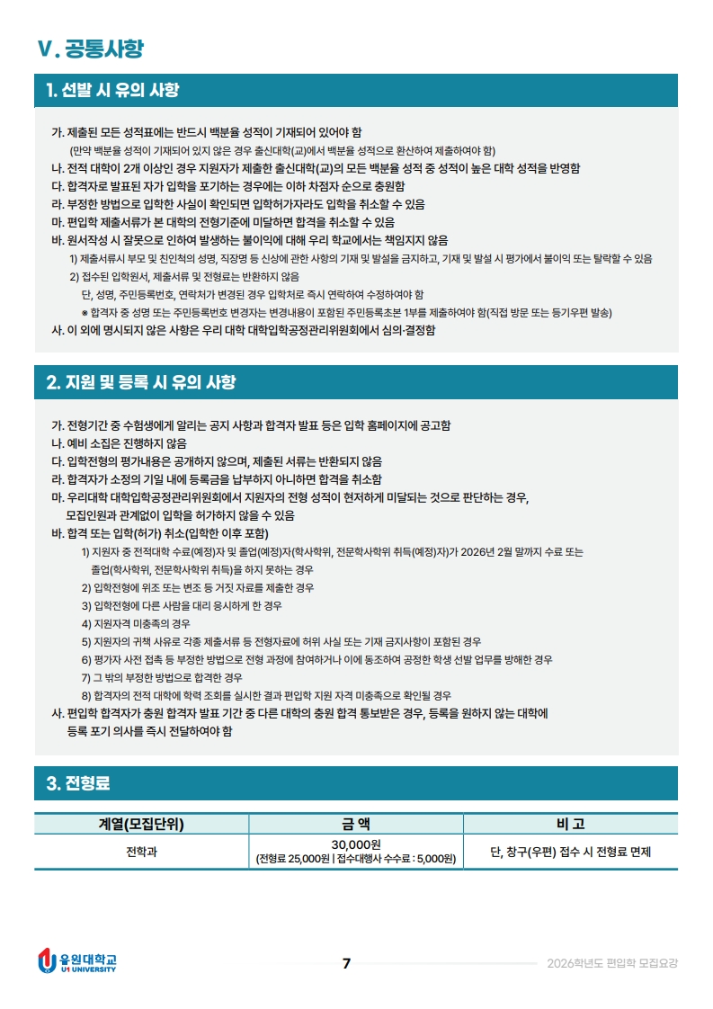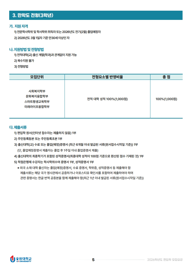 2026학년도 편입학 모집요강입니다.