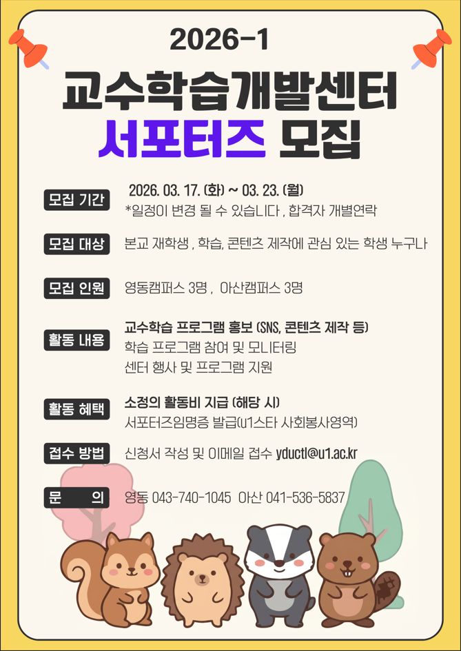 교수학습개발센터] 2026학년도 1학기 서포터즈 모집 안내
